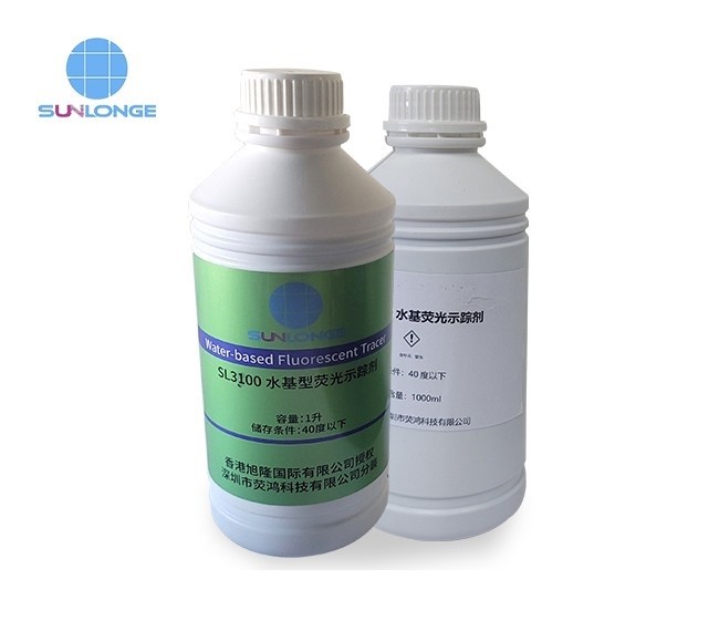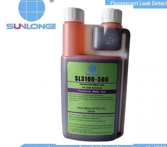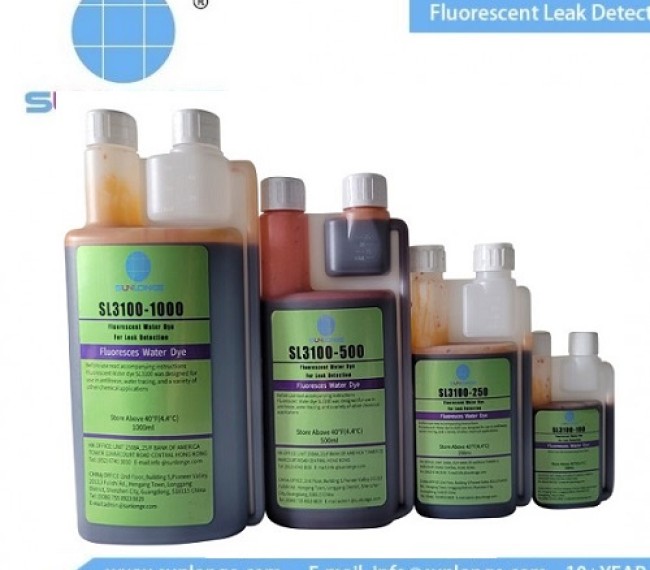 Water FLUORESCENT Dyes SL3100 is a concentrated water-soluble dye containing Fluorescein disodium salt in a compound of water and glycol solvent system. The product is a dark colored liquid and can be mixed with water or antifreeze fluid in various amounts. Fluorescent SL3100 has excellent fluorescence characteristics and light fastness even if in high pH environment. The product was designed for use in antifreeze, water tracing, and a variety of other chemical applications.